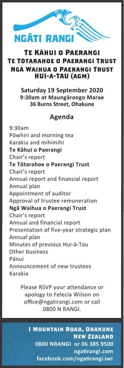 Nau mai ra e te hunga titiro ki te whārangi ipurangi Ngāti Rangi ! E tuku atu ana i nga mihi o te Nuku, o te Rangi kia koutou, tātau ngā uri o Ngāti Rangi e noho ana i nga papa-tairite, puta atu i te ao.